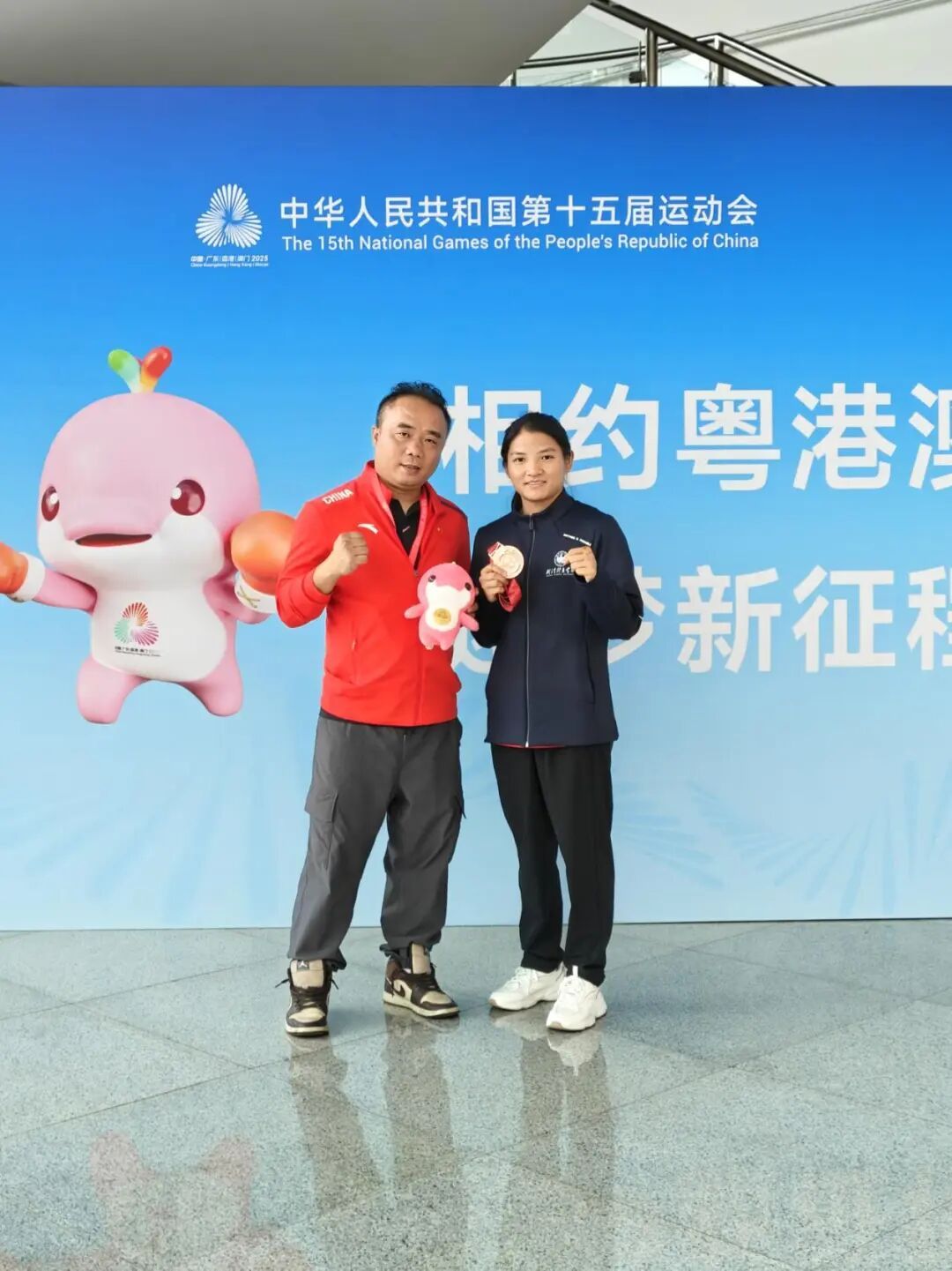 第十五届全国运动会拳击女子50公斤级决赛颁奖仪式也在当天下午举行。花都健儿熊关云代表武汉体育学院队出战全运会,面对选手敢打敢拼,充分发挥出自身的技术特点,最终获得铜牌。