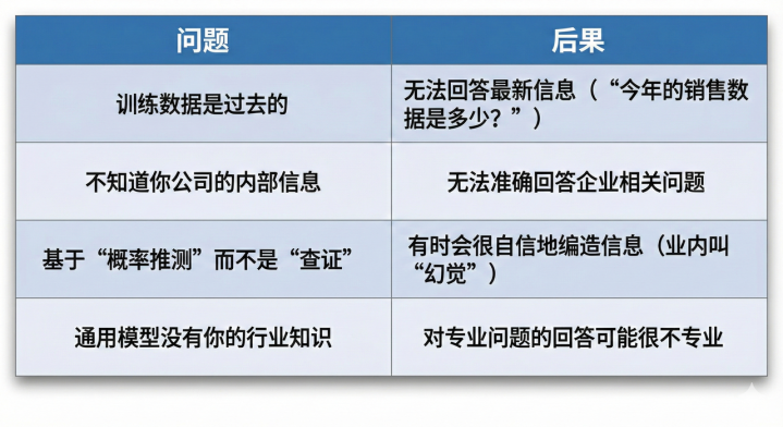 在理解RAG的价值之前,先理解它要解决什么问题。