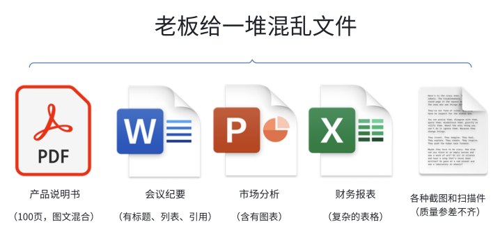 假设你要给AI导入一堆企业文档来建立知识库。看起来简单,但实际上是这样的: