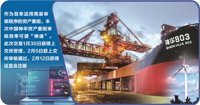 作为首单适用简易审核程序的资产重组,本次中国神华资产重组审核效率可谓“神速”。此次交易1月30日获得上交所受理,2月5日获上交所审核通过,2月12日获得证监会注册。